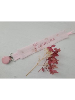 Attache tétine réalisée en double gaze de coton bio personnalisée