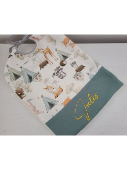 Bavoir coton thème forêt / éponge personnalisé prénom