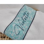 Drap de douche (70x140 cm) en éponge extra douce et épaisse avec sa bande de liberty et sa personnalisation.