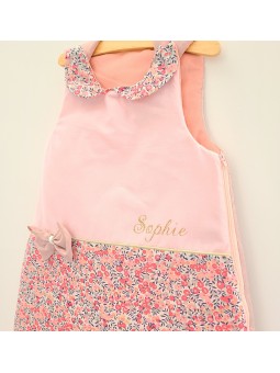 Gigoteuse personnalisée, liberty Wiltshire pois de senteur et col claudine
