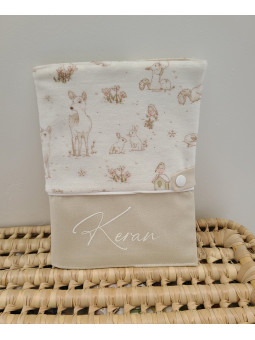 Celui-ci est réalisé avec un superbe velours petits animaux ninky et coton beige. Pression pour le fermer.