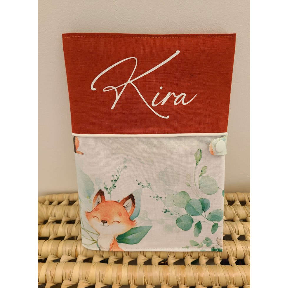 Celui-ci est réalisé avec un uni terracotta et un adorable coton petits renards. Pression pour le fermer. Jolie finitions avec passepoil assorti.