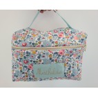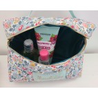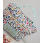 Joli vanity / trousse de toilette réalisé en liberty Mitsi (matelassée par mes soins). Superbes finitions avec fermeture éclair dorée.... La trousse est doublée de coton enduit donc imperméable.